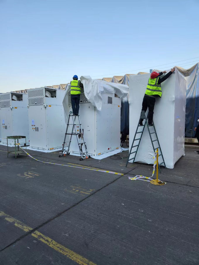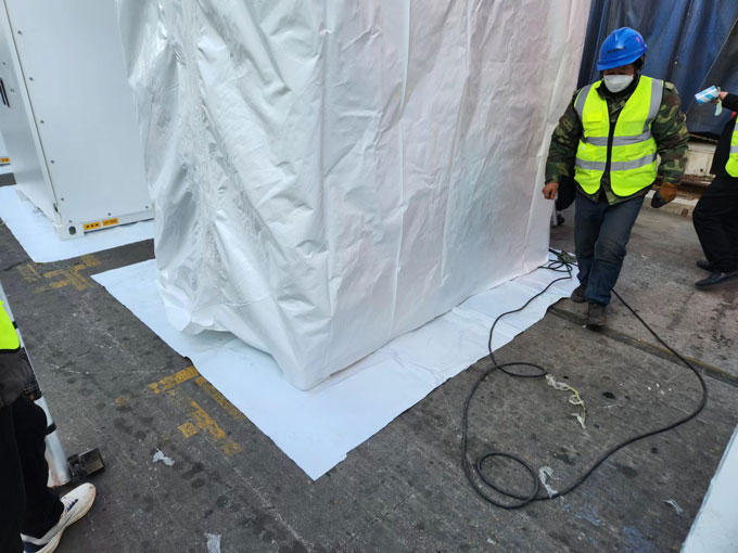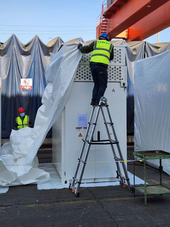 中集-出口設(shè)備熱縮膜包裝案例