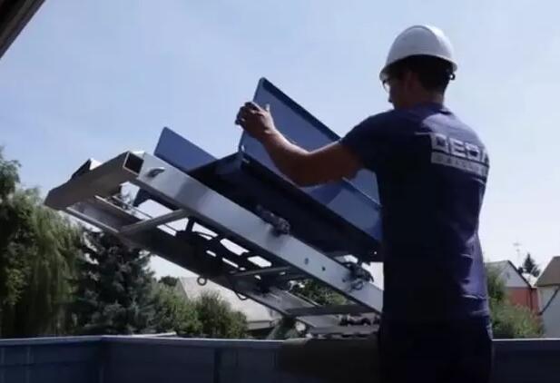 首先將運(yùn)貨架裝進(jìn)底部的梯段,然后就是將剩余的梯段一個接一個,首尾相接拼裝起來。