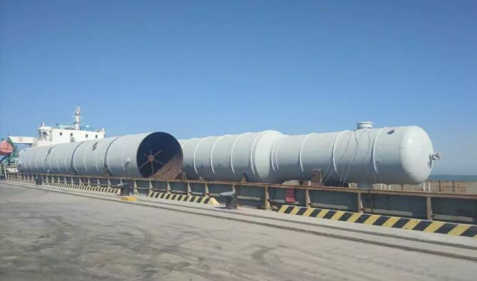 該船貨物是廣利港腹地企業(yè)定制的“脫乙烷塔”和“丙烯丙烷塔”,最大件長56米、體積1144立方米、件重280噸。貨物自大連旅順港裝船,通過水路聯(lián)運的方式,經(jīng)廣利港轉(zhuǎn)運至企業(yè),使公路運輸?shù)木嚯x縮減至最低,極大降低了企業(yè)的運輸成本