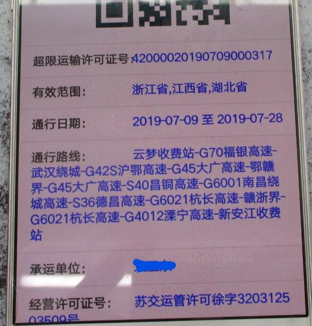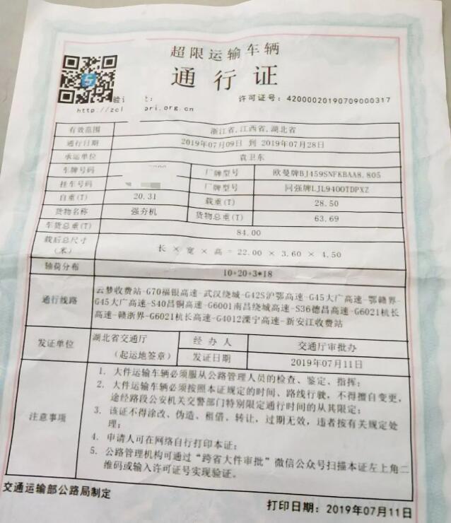 可通過《超限運輸車輛通行證》左上角提供的查驗網(wǎng)址(二維碼)進行驗證。