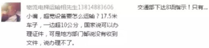 "物流電梯運輸相先生"車友問:超寬設備要怎么運輸?