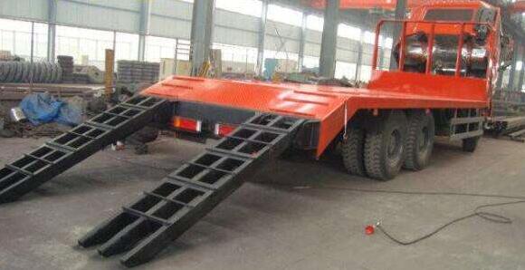 第一步:觀察裝卸場(chǎng)地,盡量做到周邊無(wú)遮擋物、上方無(wú)高壓線,前后無(wú)過(guò)往車(chē)輛。并在上下板車(chē)區(qū)域前后100m處放置安全提醒標(biāo)志。