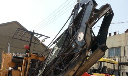 先將板車(chē)對(duì)準(zhǔn)銑刨機(jī)擺正,板車(chē)不得熄火;