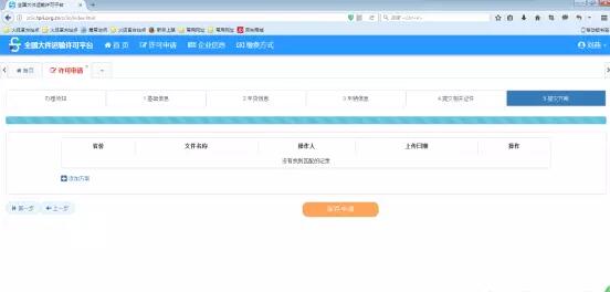 2)、許可申請(qǐng),點(diǎn)擊頁(yè)眉處【許可申請(qǐng)】按鈕,彈出頁(yè)面,即可開(kāi)始填寫申請(qǐng)信息。