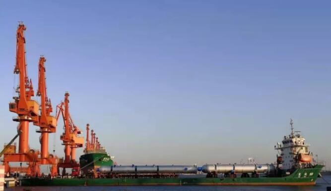 該公司結(jié)合駁船運(yùn)輸及作業(yè)特點(diǎn),利用牽引車將平板車上的3件設(shè)備從駁船上卸至碼頭,然后將另外2件設(shè)備移至駁船上,一次性成功作業(yè)5件化工反應(yīng)器罐體,這是營(yíng)口港區(qū)首次實(shí)現(xiàn)大件設(shè)備“滾裝滾卸”,也創(chuàng)下了單船裝卸大件數(shù)量新紀(jì)錄。