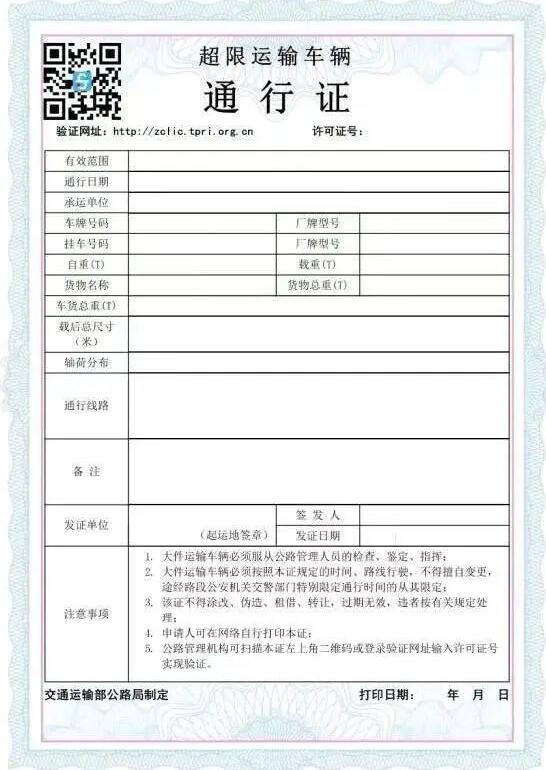 (5)市交通主管部門組織的有關(guān)部門,審驗承運單位的技術(shù)力量和車輛后,發(fā)放超限通行證。